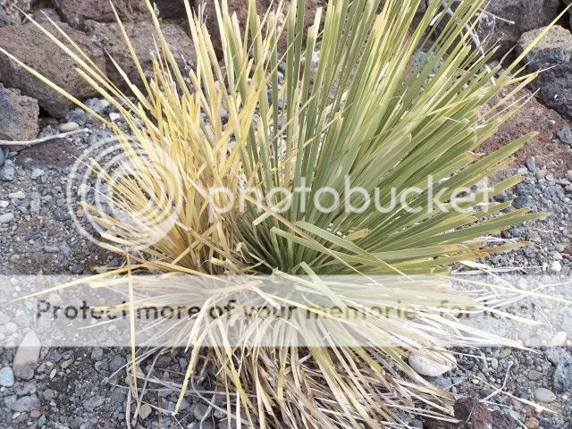 This is one of them that hurts the most, yucca brevifolia (joshua trees) or as I like to call them j-trees. I grew this one from seed as with almost all my j-trees. This plant was over 10 years old and been through many a bad winters and never had the damage it received this winter. It most likely is a goner but should come back from the roots. If it does I will move this plant away from the newly planted grass, which may have also caused some of the damage do to me watering the grass seed into the fall.